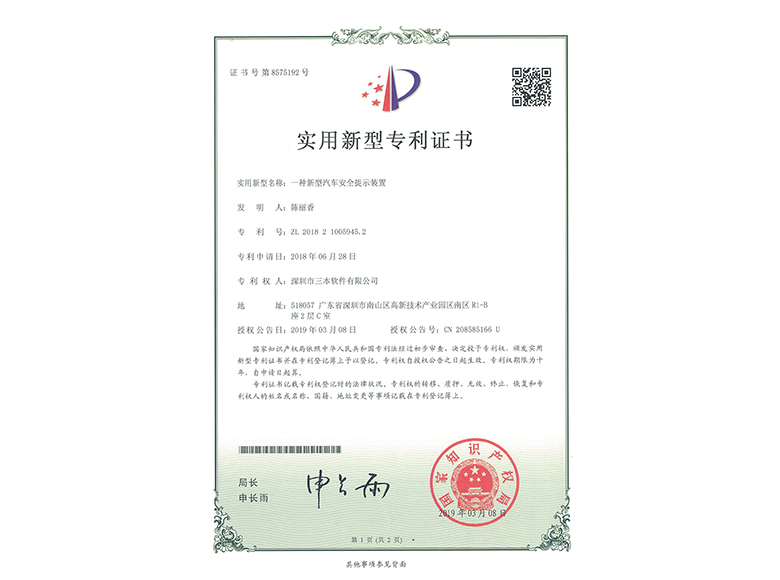 资质荣誉 高新技术企业 软件企业 CMMI L3认证企业 2017年度汽车电子科学技术奖 知识产权管理体系认证企业 专利:一种新型汽车安全提示装置 专利:一种汽车刹车片危险状态预警装置 T-BOX软件 TBOX智能网联终端软件 车载以太网交换机软件 SOUNDBOX声音系统 鲨鱼鳍智能天线软件